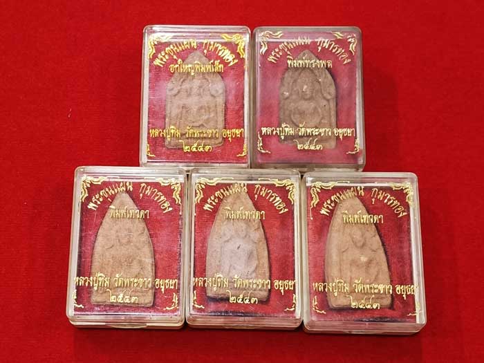 วัดใจ 100 เดียวแดง ++ พระขุนแผนหลังกุมารทอง หลวงปู่ทิม วัดพระขาว ปี2543 (5 องค์) กล่องเดิม |