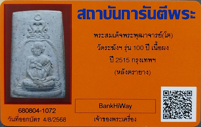 สมเด็จพระพุฒาจารย์(โต) วัดระฆังฯ รุ่น100ปี หลังตรายาง พ.ศ.2515