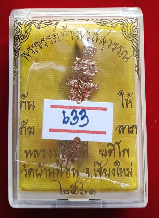 พระขรรค์ท้าวเวสสุวรรณ ปี 2561 เนื้อกะไหล่นาค หมายเลข 633 หลวงปู่ดวงดี ยติโก วัดบ้านฟ่อน อ.หางดง จ.เชียงใหม่ เด่น ป้องกันภัย ให้ลาภ |