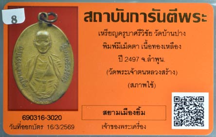 เหรียญครูบาศรีวิชัย วัดบ้านปาง ปี2497 วัดพระเจ้าตนหลวงสร้าง