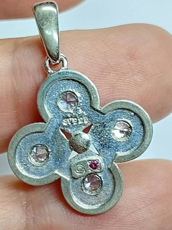 จี้เงินวินเทจ เงิน 925 แบรน Made in Japan ฝังเพชร CZ มีทับทิมฝังอยู่ด้านหล้ง1เม็ด |