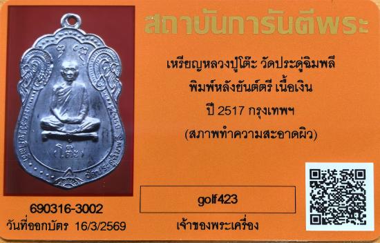 เหรียญเสมาหลังยันต์ตรี ปี 2517 หลวงปู่โต๊ะ วัดประดู่ฉิมพลี เนื้อเงิน สร้างน้อย (500 องค์) หายากมาก สภาพสวยมากคมชัด ผิวกระจกสวยๆ มาพร้อมบัตรรับรองพระแท้ 2 ใบครับ (G-Pra + ป๋องสุพรรณ ACI)