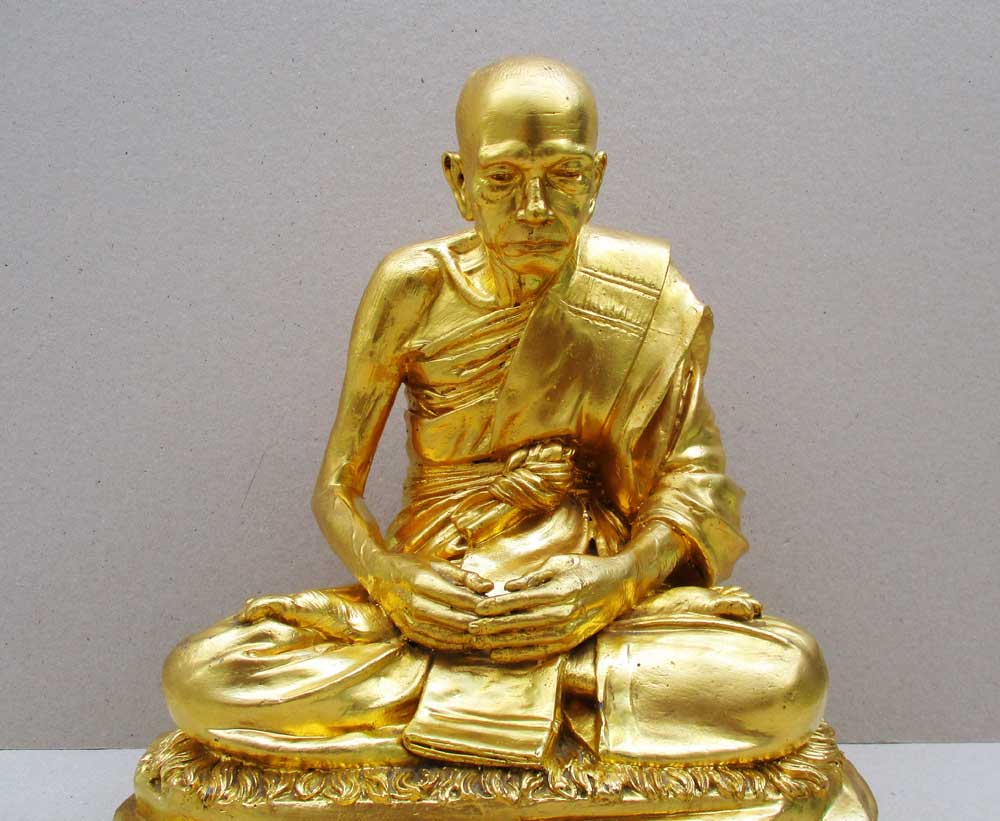 พระบูชาพระครูภัทรธรรมรัตน์ วัดโคกสูง จ.สงขลา รุ่นแรก ฉลองอาย ุ 7 รอบ 84 ปี พ.ศ.2539 หน้าตัก 9.7 นิ้ว เนื้อทองลำอู่ ปิดทอ งคำเปลวผิวแห้งหิ้ง !!