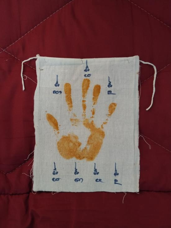 ผ้ายันต์รอยมือ หลวงปู่สิงห์โต จิตฺตธมฺโม สำนักสงฆ์ป่าทรงธรรม อุบลราชธานี |