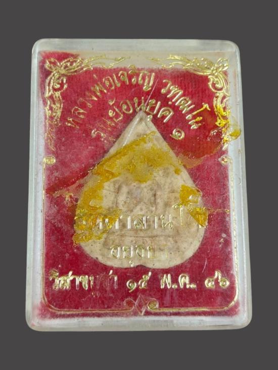 A8415.เนื้อผงใบโพธิ์ หลวงพ่อเจริญ รุ่นย้อนยุค ๑ วัดตาลานใต้ ปี 46 มีกล่อง เคาะเดียวเเดง