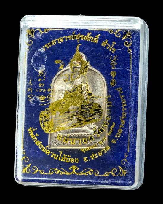 เหรียญรุ่นแรก แม่นางกวักทองมา พระอาจารย์สุรศักดิ์ (เกิ้ง สํวโร) ที่พักสงฆ์ควนไม้บ้อง จ.นครศรีธรรมราช เนื้ออัลปาก้า (ฝังก้านชนวน) ปี 2561