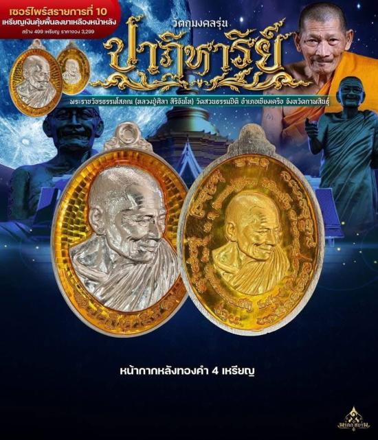 เหรียญปาฏิหาริย์ หลวงปู่ศิลา เนื้อเงินลงยาเหลือง ซีลเดิม ลุ้นเซอร์ไพรส์ค่ะ