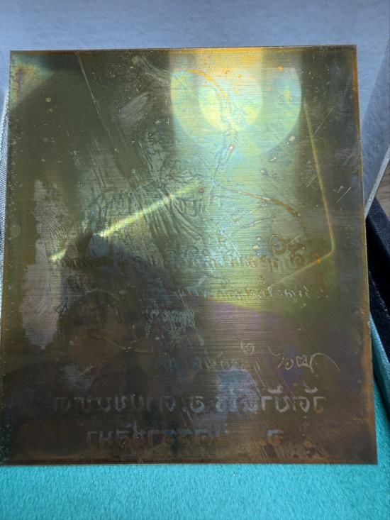 (6)แผ่นปั้มเนื้อทองแดงหลังเรียบ หลวงพ่อคูณ วัดบ้านไร่ สร้างปี 2 538 ขนาด 3.5x4 นิ้ว พร้อมกล่อง