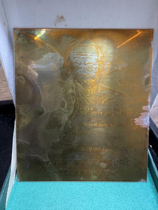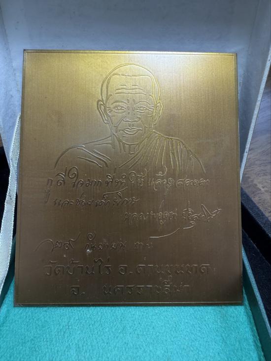 (5)แผ่นปั้มเนื้อทองแดงหลังเรียบ หลวงพ่อคูณ วัดบ้านไร่ สร้างปี 2 538 ขนาด 3.5x4 นิ้ว พร้อมกล่อง