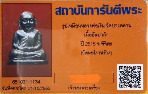 หลวงพ่อเงินวัดบางคลานปี15ออกวัดหอไกร เนื้ออัลปาก้า บัตรรับรอง เลี่ยมพร้อมบูชาครับ ขอคนที่พร้อมครับจะไม่เสียเวลากันทั้ง2ฝ่ายครับ.