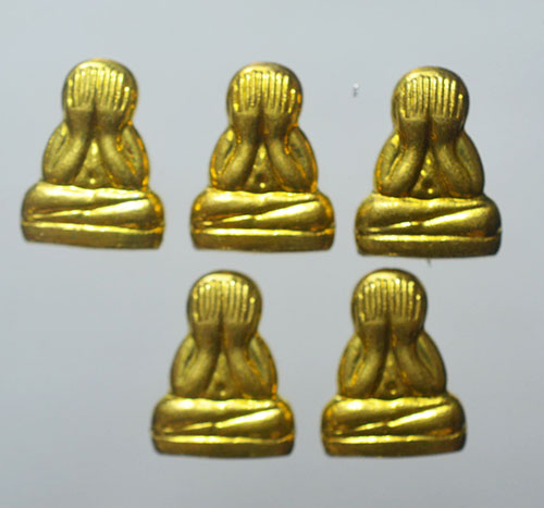 5 องค์ พระปิดตา มหาลาภ ปี 58 พ่อท่านเขียว วัดห้วยเงาะ ปัตตานี เนื้อทองฝาบาตร หลังยันต์ ตอกโค๊ด