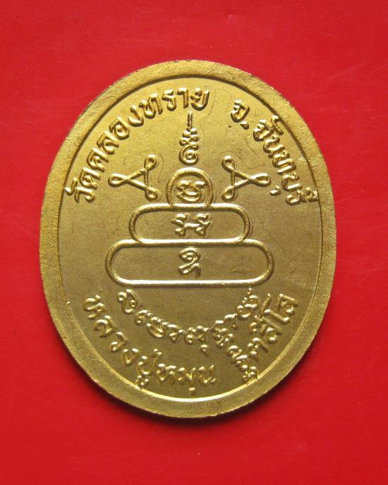 เหรียญหลวงปู่หมุน ฐิตสีโล วัดบ้านจาน เนื้อทองแดงกะไหล่ทอง ที่ระลึกในงานเททองหล่อพระประประทาน วัดคลองทราย ปี 2543 พร้อมกล่องเดิม