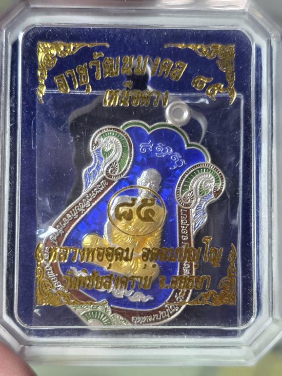 วัดใจ เคาะแรก แดง เหรียญเหนือดวง หลวงพ่ออุดม วัดพิชัยสงคราม อยุธยา เนื้อเงินลงยาน้ำเงินพร้อมกล่องเดิมๆ