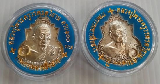 เหรียญหลวงปู่วรพรตวิธาน รุ่น100 ปี วัดจุมพล จ.ขอนแก่น ปี 2543 กรมการทหารสื่อสารจัดสร้าง เนื้อกะไหล่เงิน รับจำนวน 2 เหรียญ