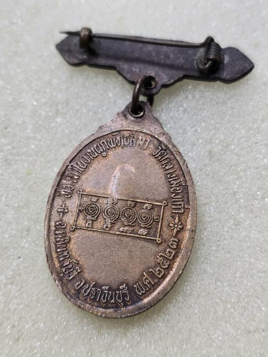 เคาะเดียวแดง เหรียญรูปไข่เนื้อทองแดง( หน้ากากเงิน ฝังกริ่ง )พระครูมนูญกิตติคุณ วัดกลางเมืองเก่า จ.ปราจีนบุรี พ.ศ.2523 |