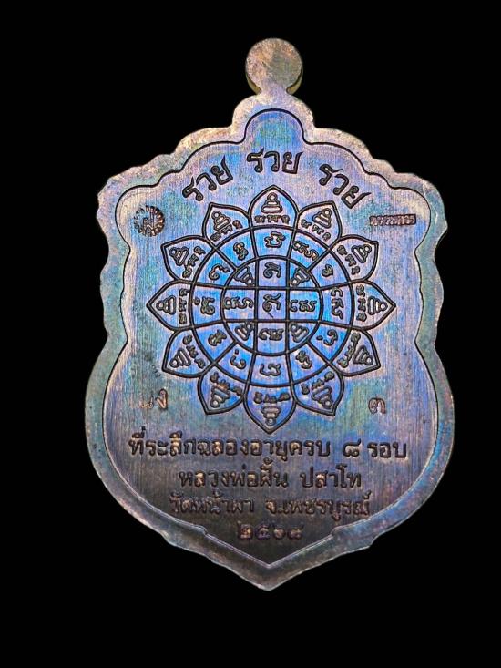 เหรียญเสมา8รอบรุ่นรวยรวยรวย หลวงปู่ฝั้น ปสาโท วัดหน้าผา (เนื้อนวะ หน้ากากเงิน ลงยาขอบขาวลงยาจีวร เลข3) |