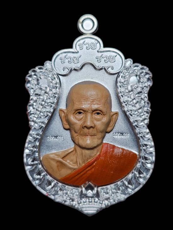 เหรียญเสมา8รอบรุ่นรวยรวยรวย หลวงปู่ฝั้น ปสาโท วัดหน้าผา (เนื้ออาบเงินหน้ากากเพ้นท์เสมือนจริง อุดมวลสารหล่อครุฑมหาอำนาจ เลข10) |