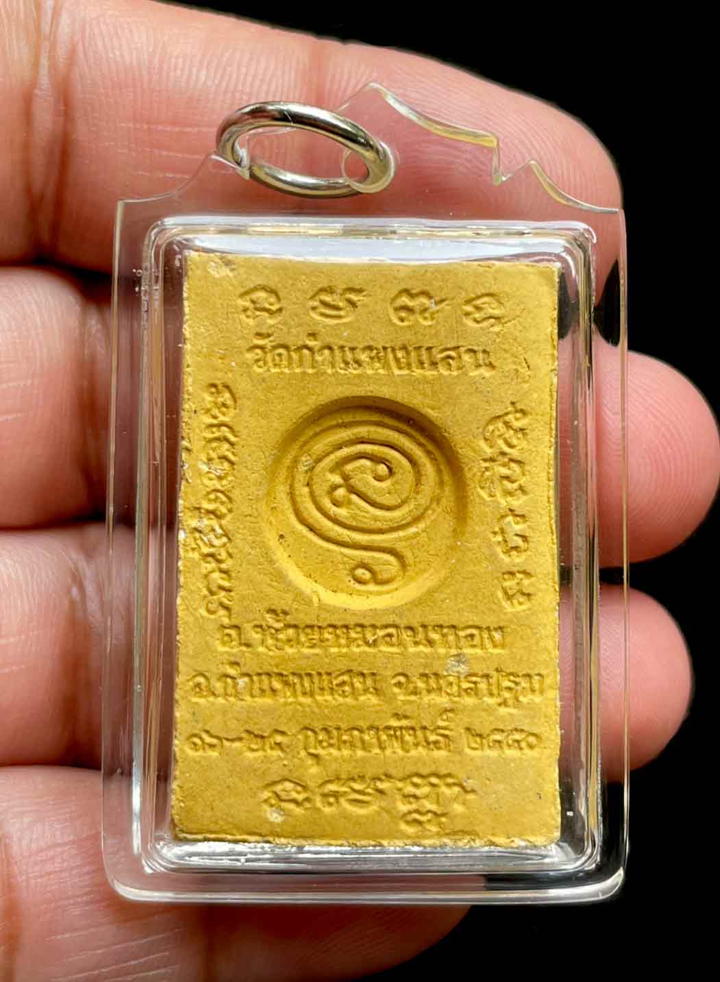 วัดใจ พระผงรูปเหมือน หลังยันต์ ปี 2550 หลวงปู่แผ้ว ปวโร วัดกำแพงแสน จ.นครปฐม เลี่ยมพลาสติก สวยงาม