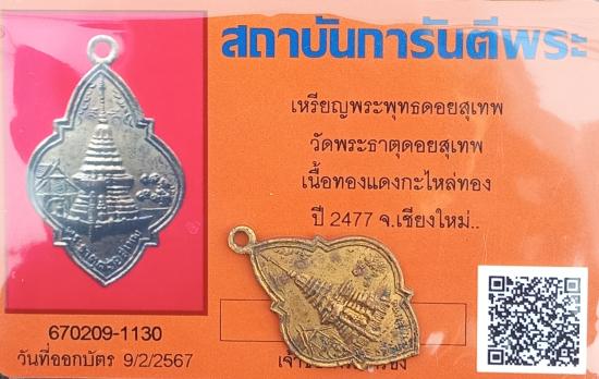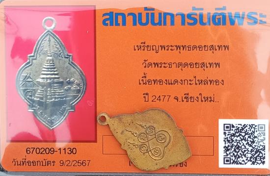 เคาะเดียวแดง++เหรียญรุ่นแรกพระธาตุดอยสุเทพ ปี2477 สวยเดิมกระไหล่ทอง พร้อมบัตรรับรองพระแท้ครับ