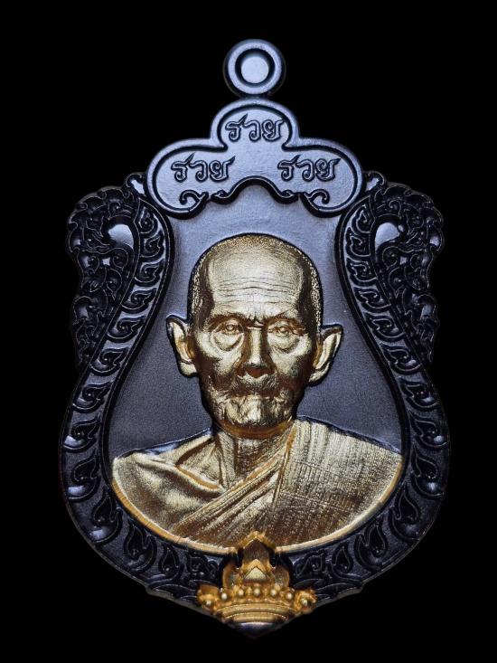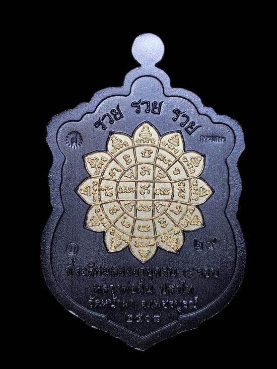 เหรียญเสมา8รอบรุ่นรวยรวยรวย หลวงปู่ฝั้น ปสาโท วัดหน้าผา (เนื้อแบล็คโรเดียม หน้าทอง เลข29) |