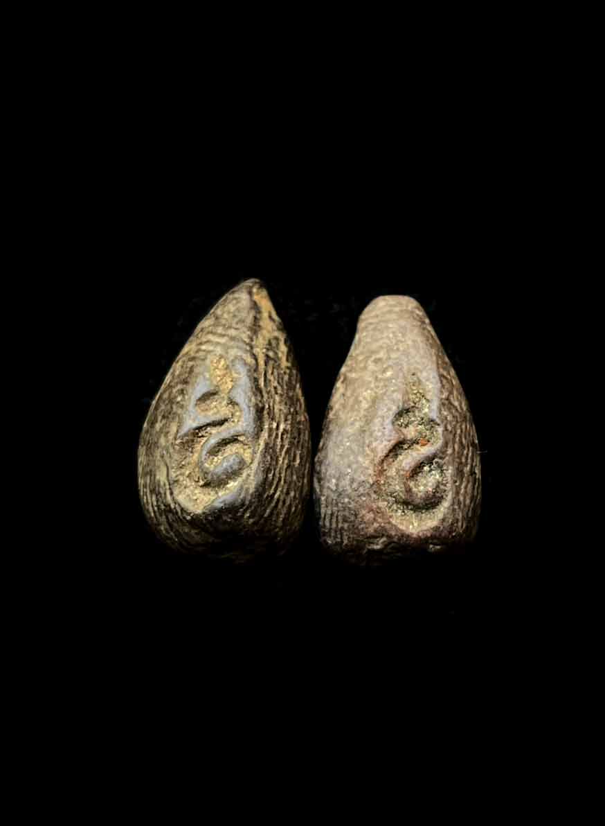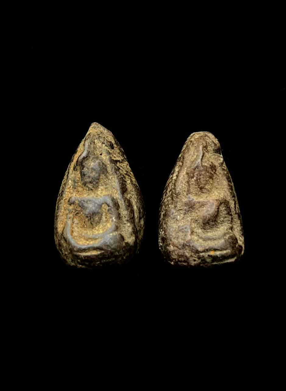 วัดใจ 2 องค์ พระเม็ดน้อยหน่า หลังอุ กรุวัดศาลาปูน จ.อยุธยา เนื้อดินผสมใบลานเผา