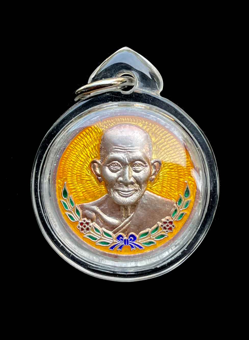 เหรียญหลวงปู่ศุข วัดปากคลองมะขามเฒ่า เนื้อเงินลงยาสีหลือง ปี 2538