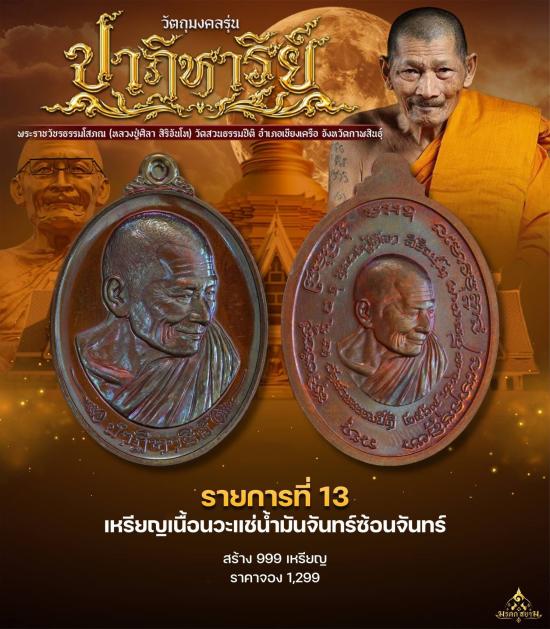 เหรียญปาฏิหาริย์ เนื้อนวะแช่น้ำมันจันทร์ซ้อนจันทร์ เลข 842 หลวงปู่ศิลา สิริจันโท วัดสวนธรรมปิติ จ.กาฬสินธุ์ ปี 2569 |