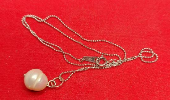 จี้ไข่มุกแท้พร้อมสร้อยเงิน 925 งานญี่ปุ่น ยาว 16 นิ้ว นน. 3.1 กร้ม