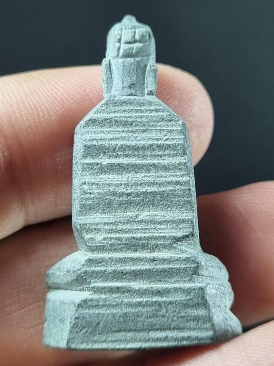 พระพุทธหินแกะ หลังมีจารประเทศอินเดีย ครูบาบุญชุ่ม ญาณสํวโร วัดพระธาตุดอนเรือง ปลุกเสก แล้วแจกลูกศิษย์ ปี 2535 พระพุทธรูป พิมพ์พระประทาน
