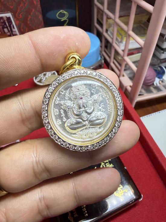 เหรียญพังพะกาฬรุ่น เจ้าสัวพันล้าน รายการที่38เนื้อกะไหล่เงิน ฝังพลอยเเดง เลขโค๊ต73 พร้อมกรอบอิตาลี่