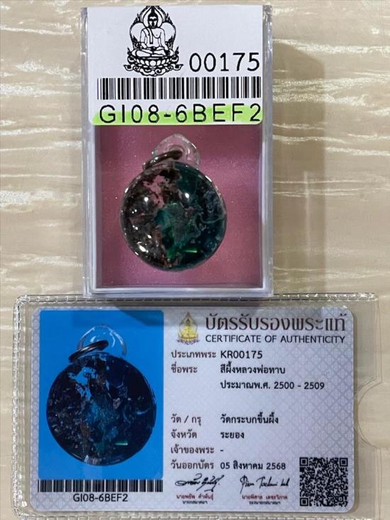 (เคาะแดง1900) +บัตรสมาคม สีผึ้งเขียว+น้ำตาลหลวงพ่อทาบ วัดกระบกขึ้นผึ้ง