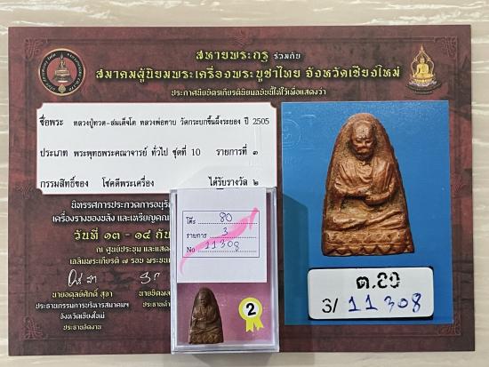หลวงปู่ทิมร่วมปลุกเสก สร้างปี 2505 สวยสมบูรณ์ผิวเดิมๆ ไม่หักไม่ซ่อม รับประกันพระแท้ ดูง่าย พร้อมใบประกาศรางวัลที่2 งานสมาคม