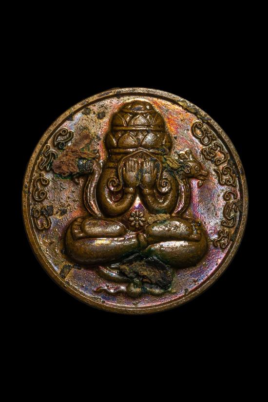 (เคาะแดง3900) +บัตรสมาคม พระปิดตาพังพระกาฬ เนื้อทองแดงแช่น้ำมันเสือ