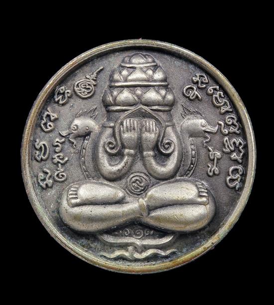 เหรียญปิดตาพระโพธิสัตว์พังพะกาฬ เนื้อทองขาวเคลือบเงินผิวโบราณ เลข590 ตอกสองโค๊ตแยกชุดพิเศษกรรมการ 9 รอบ 9 พิธี 108 ปี ท่านขุนพันธ์ จ.นครศรีธรรมราช ปี 2549