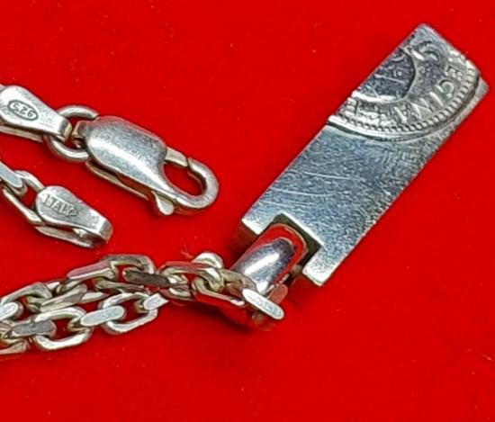 สร้อยคอเงินแท้ 92.5 Italy พร้อม จี้เหรียญ 6 เพนนี จากแบรนด์ AQUA SILVER