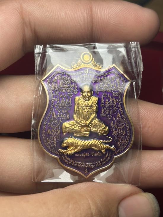 เหรียญพยัคฆ์ 6 แผ่นดิน รุ่นแรก หลวงปู่สอ ขันติโก วัดโพธิ์ศรี เลขสวย๔๔๔ เนื้อสัตตะลงยาสีม่วง พร้อมกล่อง |