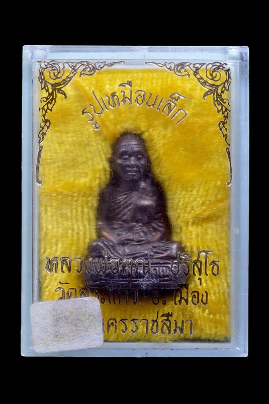 รูปหล่อเหมือนนั่งสมาธิ รุ่น คูณทวี พระชุดของขวัญพิเศษ ( เนื้อนวโลหะ ) ขณะนั้นจำพรรษา วัดสระแก้ว พ.ศ.2527 ( กล่องเดิม )