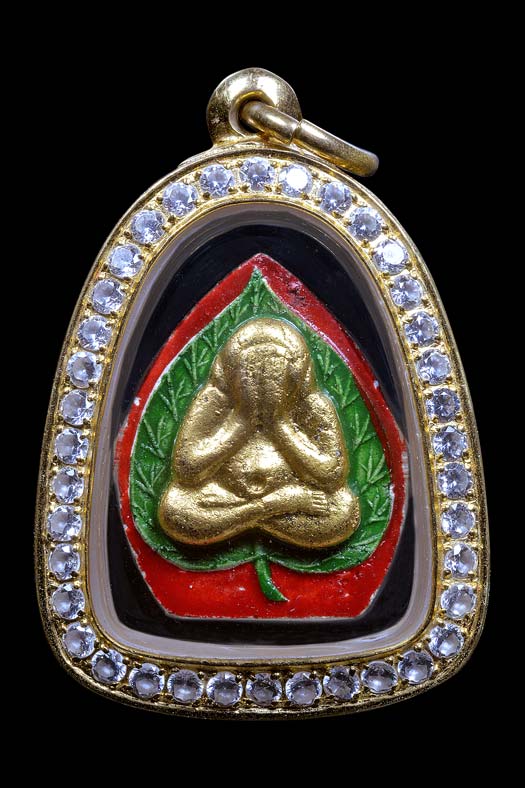 พระปิดตาคูณลาภ ( เนื้อผงขาว ลงสี ) พ.ศ.2517 ( เลี่ยมกรอบอิตาลีชุบทองฝังเพชรเทียม )