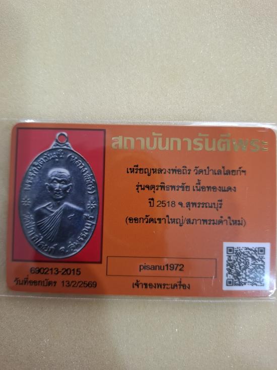 หรียญจตุรพิธพรชัย หลวงปู่ถิร วัดป่าเลไลย์ 2518 หลวงพ่อกวย หลวงปู่ดู่ หลวงพ่อหน่าย หลวงปู่โต๊ะ ร่วมปลุกเสก เกจิดังๆร่วมปลุกเสกมากมายครับ พร้อมบัตรG(รมดำใหม่) |