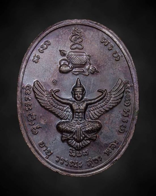 เหรียญหลวงปู่แหวนรูปเหมือนครึ่งองค์หลังครุฑ (บล็อคไม่มีห่วง)
