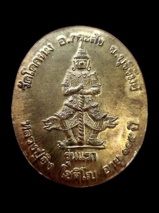 เหรียญรุ่นแรกหลังท้าวเวสสุวรรณหลวงปู่อิง โชติโญ บล็อคทองคำไม่ตอกโค๊ตแจกในพิธี หลวงปู่หมุน ฐีตสีโล ร่วมปลุกเสก สภาพเดิมไม่ผ่านการใช้งาน