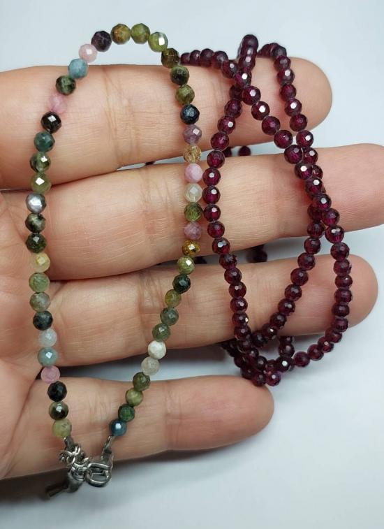 ***วัดใจ***สร้อยโกเมนเจียเหลี่ยม เล่นแสง ขนาดเล็ก 3 mm. ยาว 21 นิ้ว กับข้อมือทัวร์มาลีน Tourmaline ขนาดเล็ก 3 mm