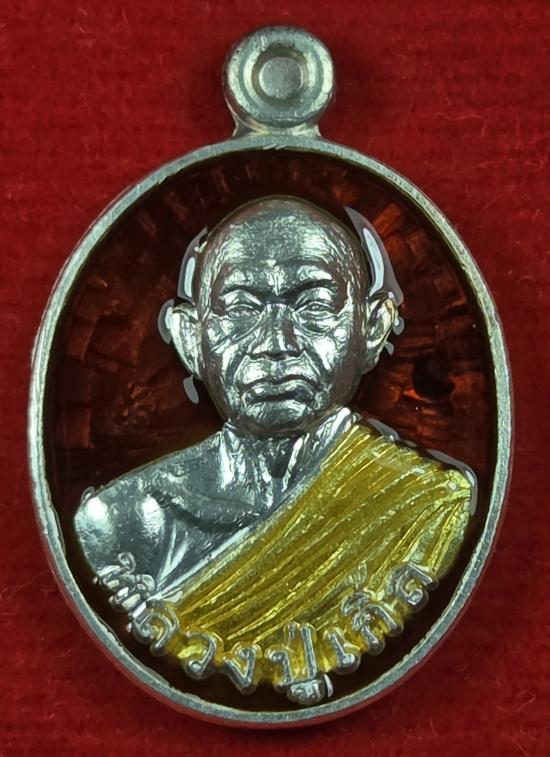 เหรียญเม็ดแตงหลวงปู่นิเกิ้ล ขันติสาโร วัดวิหารธรรม ปี 2561 เนื้อเงินลงยา รุ่นเจริญลาภ หมาเลข 23 พร้อมกล่องเดิม ๆ สร้าง 99 เหรียญ จ.สระแก้ว