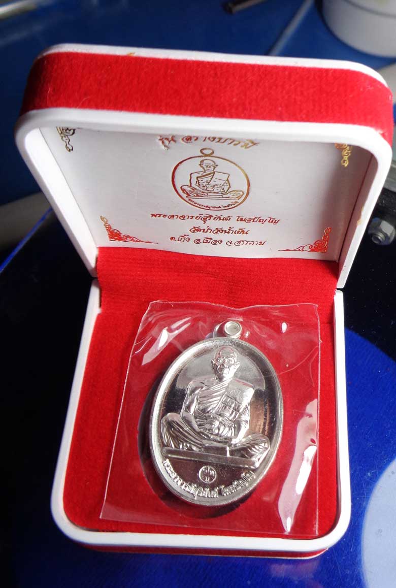 เหรียญหลวงพ่อสุริยันต์ โฆสปัญโญ วัดป่าวังน้ำเย็น รุ่นสร้างบารมี เนื้อเงิน ปี 2567 หมายเลข 77 พร้อมกล่องเดิม ๆ สวยเดิม ๆ จ.มหาสารคาม