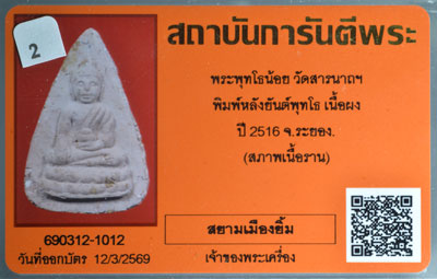 พระพุทโธน้อย รุ่น2 พิมพ์หลังยันต์พุทโธ ปี 2516 วัดสารนาถธรรมาราม จ.ระยอง |