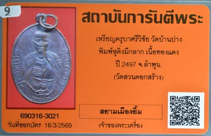 เหรียญครูบาศรีวิชัย วัดบ้านปาง ปี2497 วัดสวนดอกสร้าง หูติ่ง