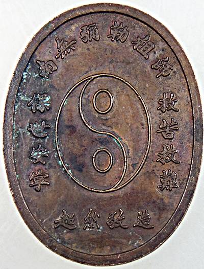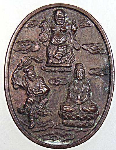 เหรียญสามเซียน พระสังกัจจายน์ พระจี้กง พระโพธิสัตว์กวนอิม หลังหยินหยาง