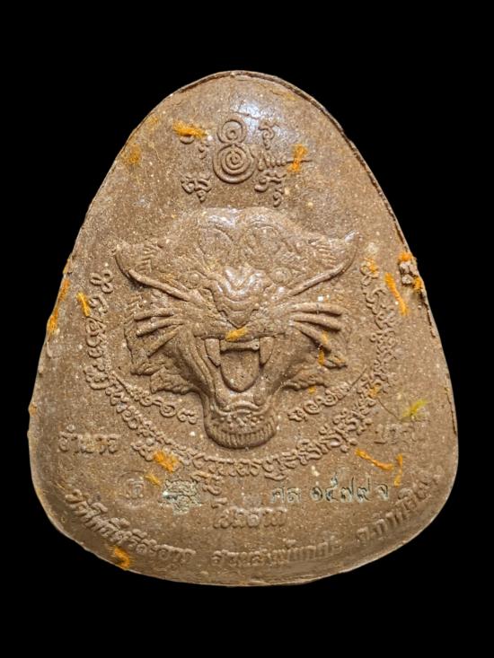 รุ่นแรก เสือ 1 เนื้อแร่เหล็กไหลพลายดำคลุกจีวรหลวงปู่ศิลา โค๊ต ศล no.1579