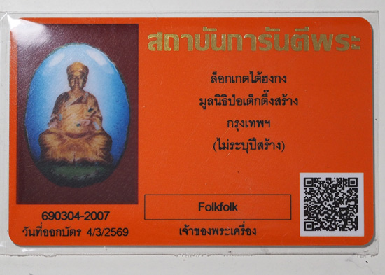 ล็อคเก็ตไตฮงกง ทรงกลม ฉากฟ้า พร้อมบัตรรับรอง จัดสร้างโดยมูลนิธิป่อเต๊กตี๊ง หายากมากๆน่าสะสมครับ |