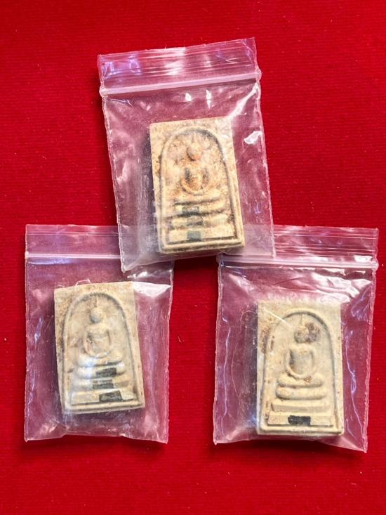 เคาะเดียวแดง พระสมเด็จฝังตะกรุด ไม่ทราบที่ ไม่ทราบปี ( 1 กระดาน 3 องค์ )